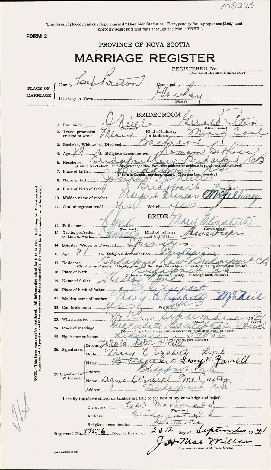Registration: Year: 1941 number: 108245