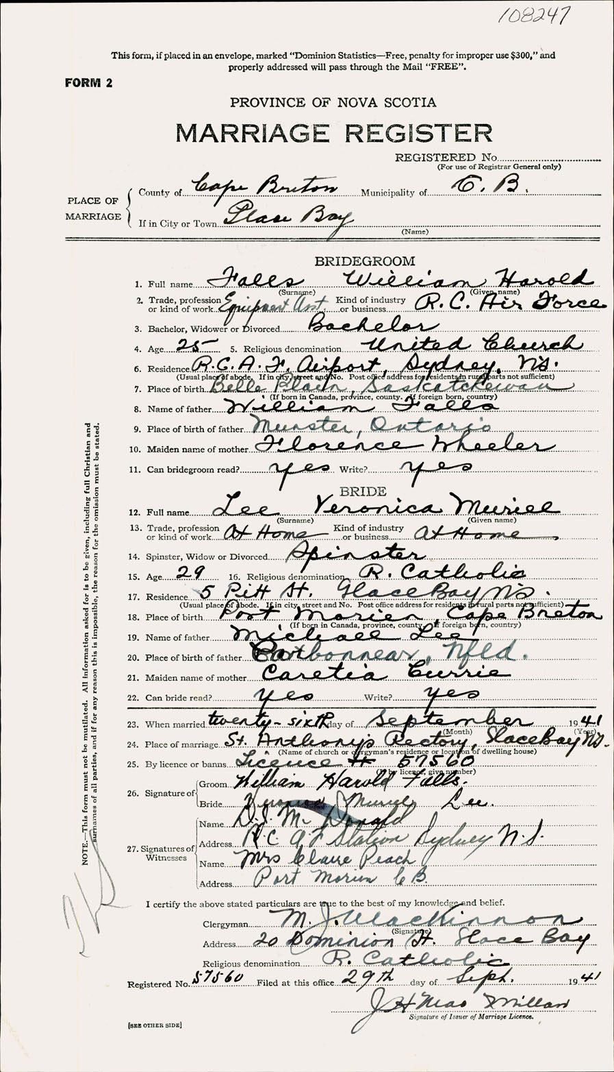 Registration: Year: 1941 number: 108247