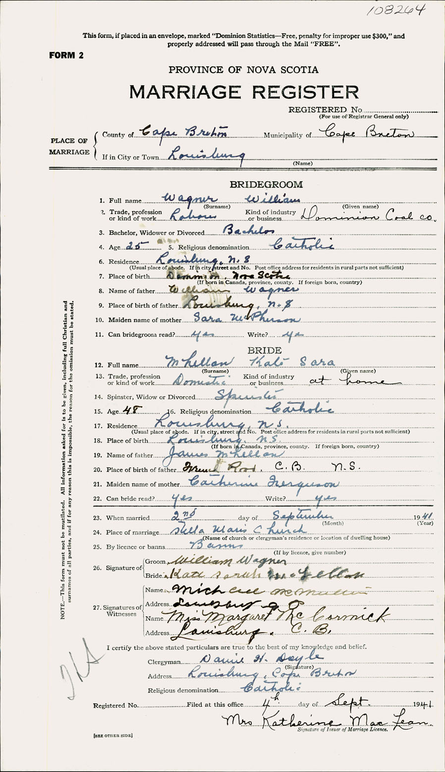 Registration: Year: 1941 number: 108264
