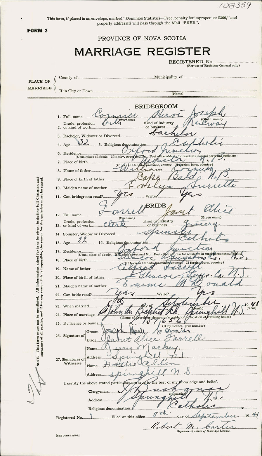 Registration: Year: 1941 number: 108359