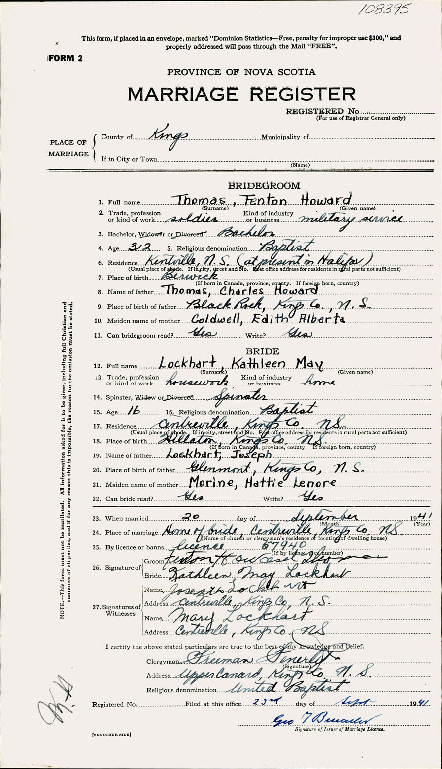 Registration: Year: 1941 number: 108395