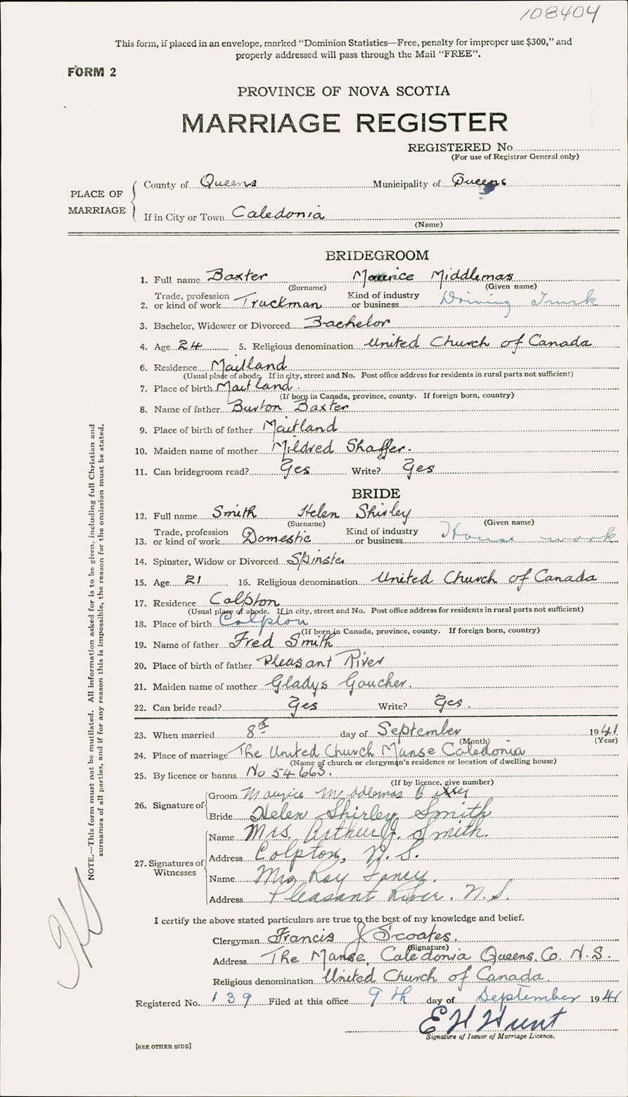 Registration: Year: 1941 number: 108404