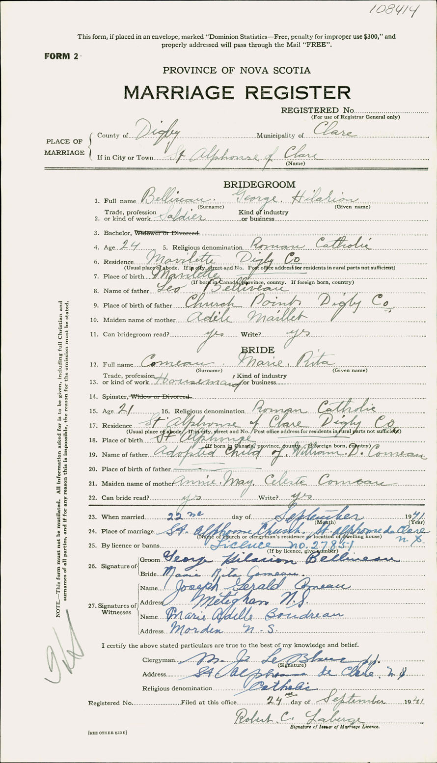 Registration: Year: 1941 number: 108414