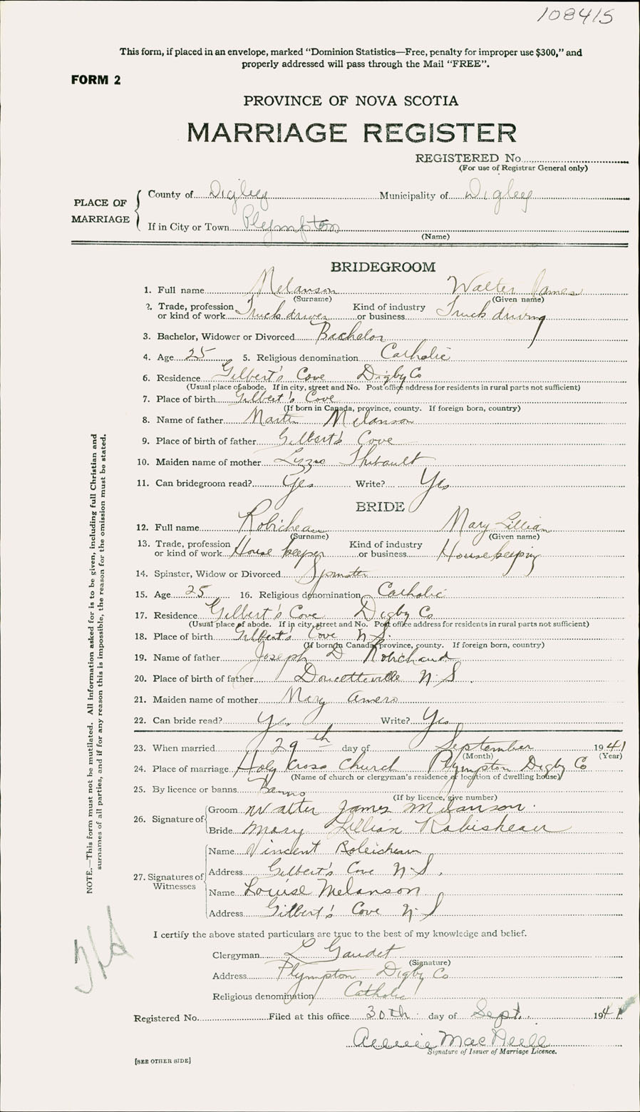 Registration: Year: 1941 number: 108415