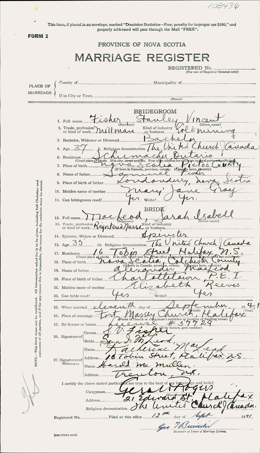 Registration: Year: 1941 number: 108436