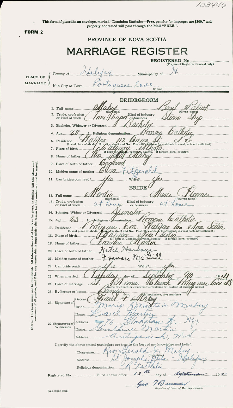 Registration: Year: 1941 number: 108446