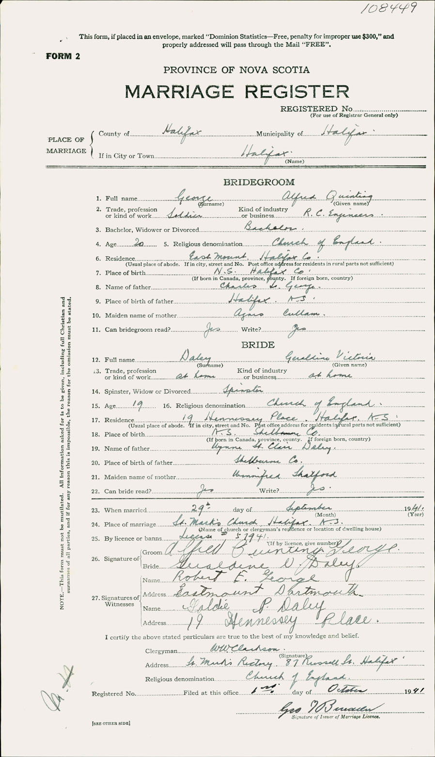 Registration: Year: 1941 number: 108449
