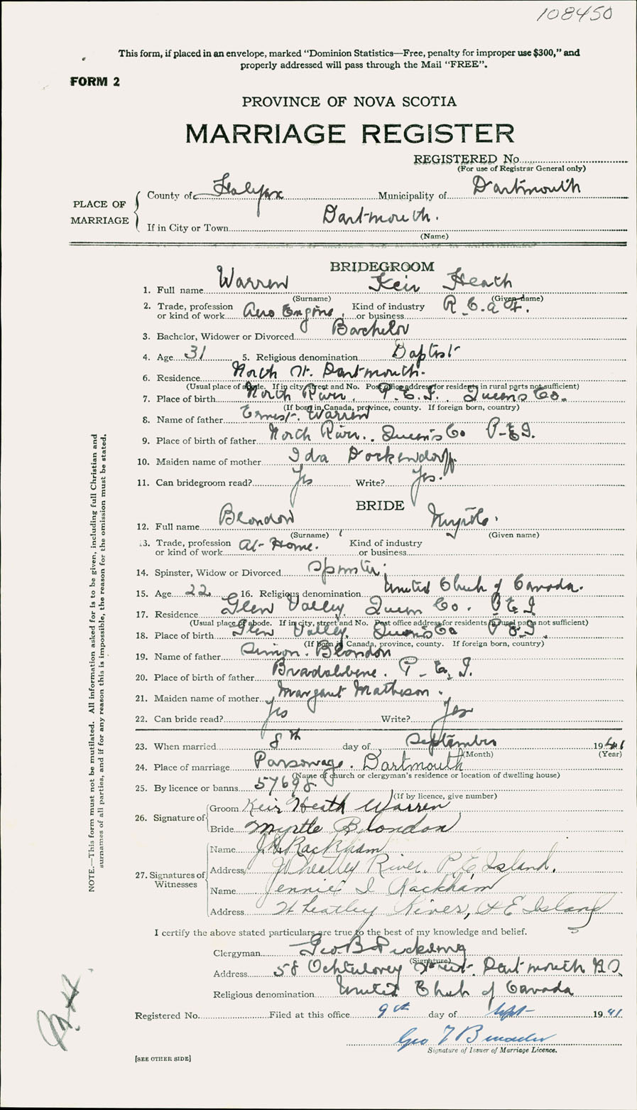 Registration: Year: 1941 number: 108450