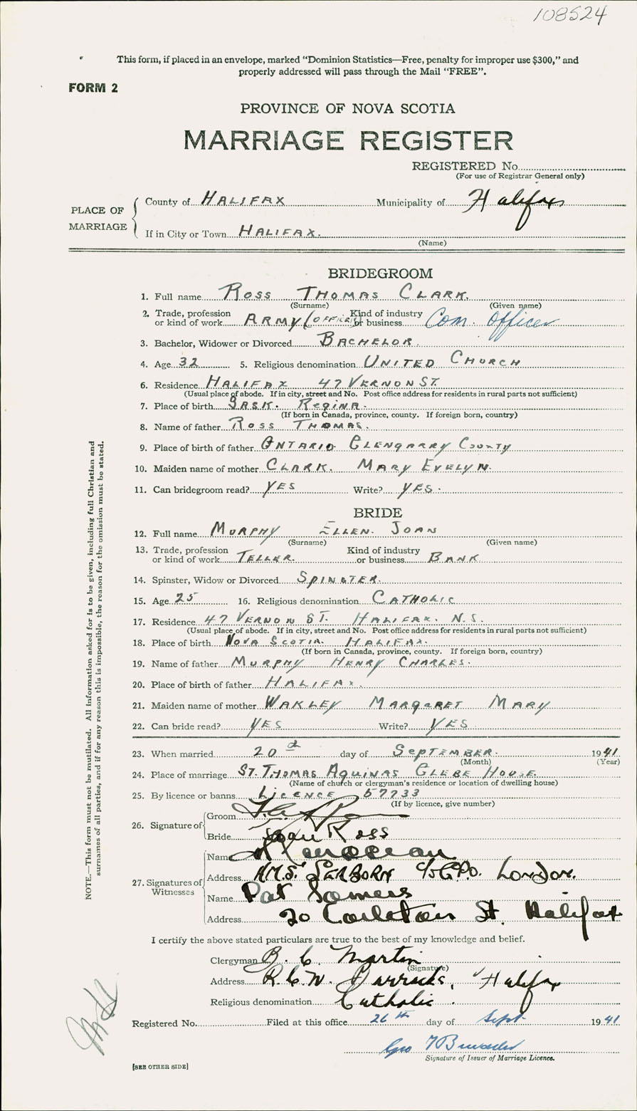 Registration: Year: 1941 number: 108524
