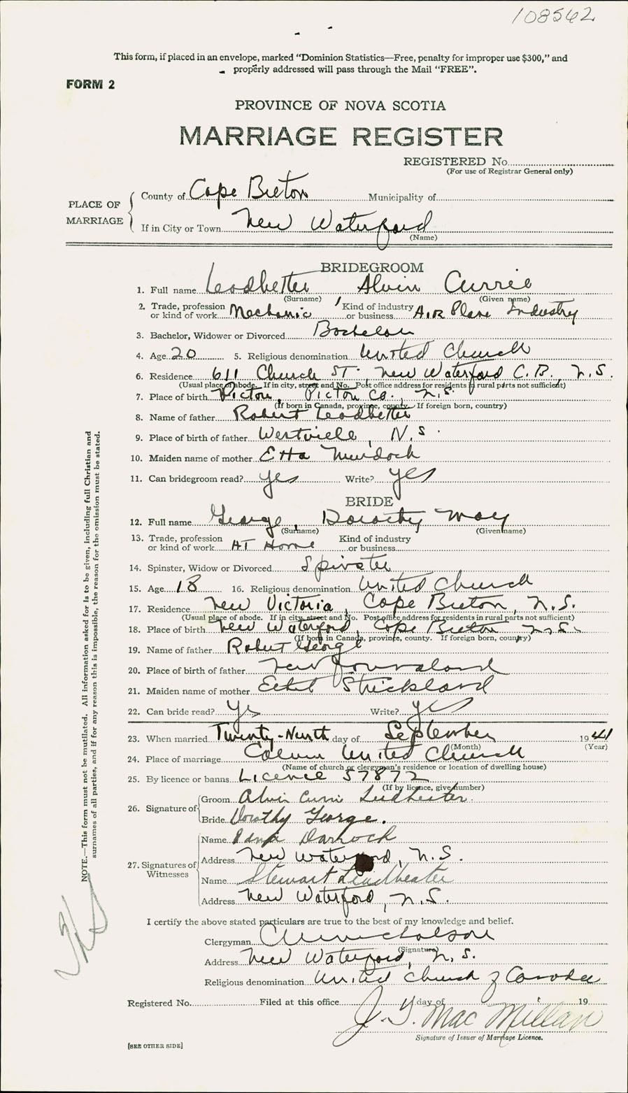 Registration: Year: 1941 number: 108562