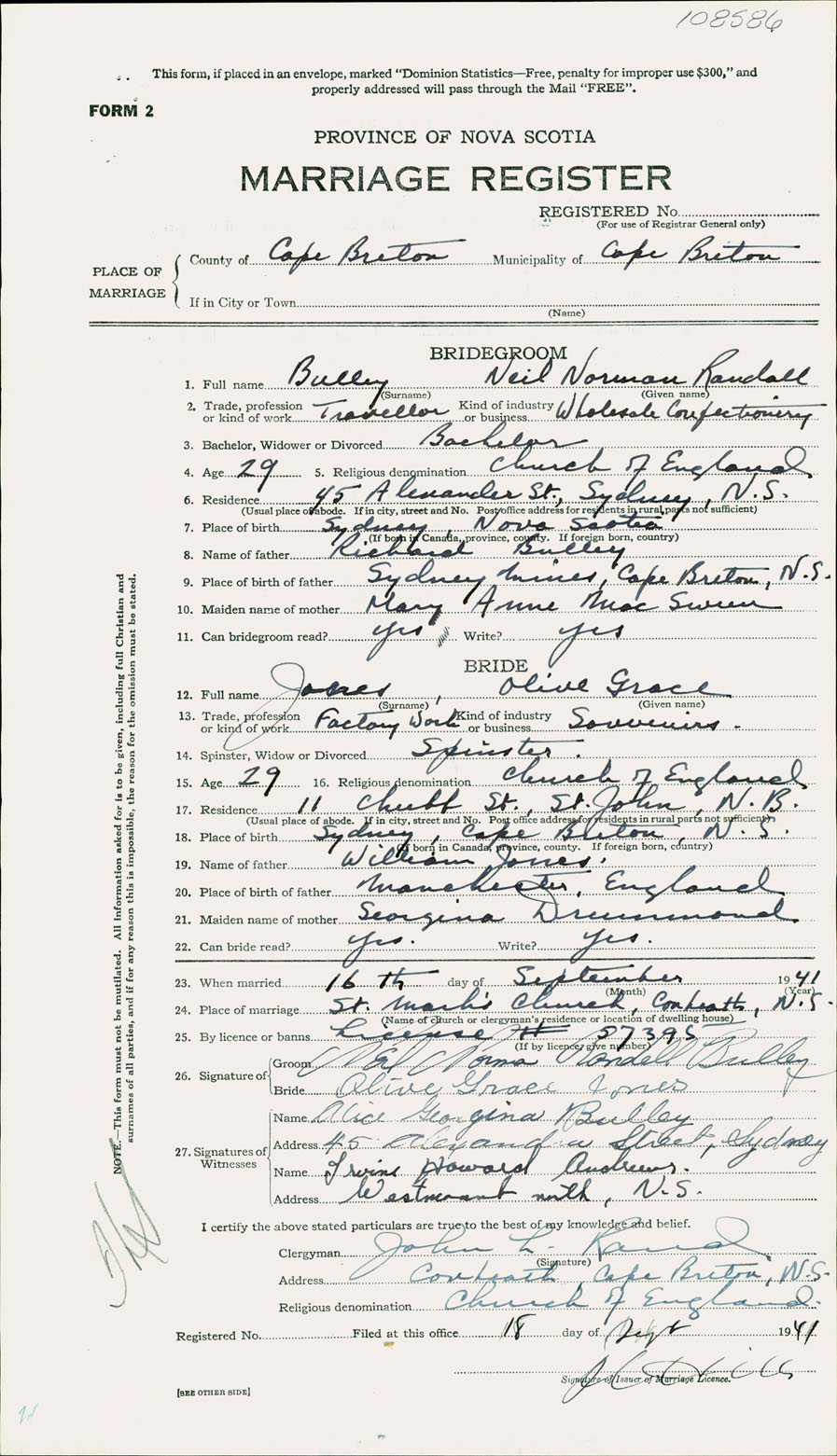 Registration: Year: 1941 number: 108586