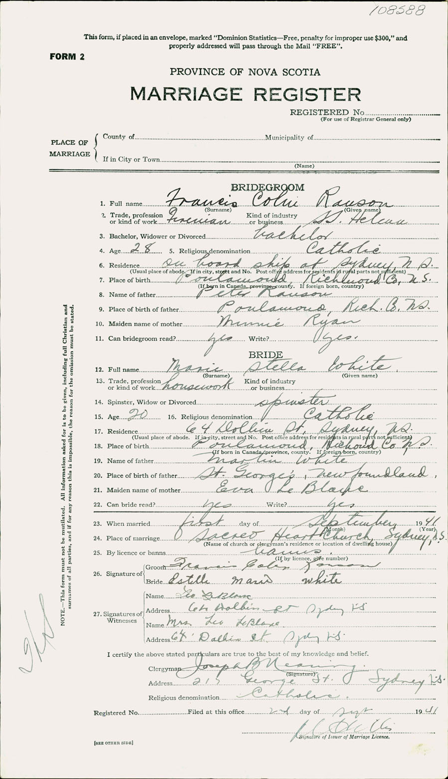Registration: Year: 1941 number: 108588