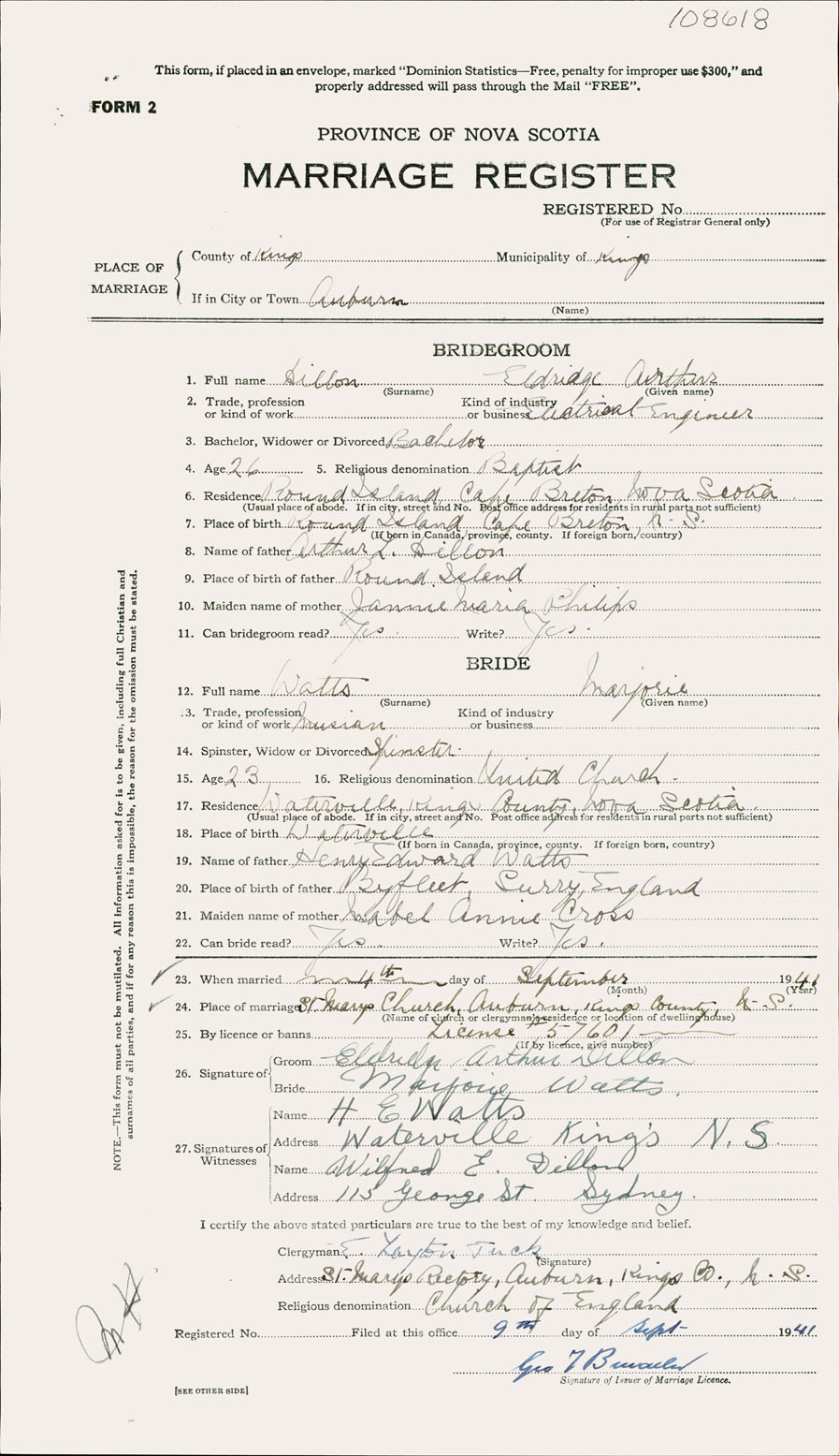 Registration: Year: 1941 number: 108618