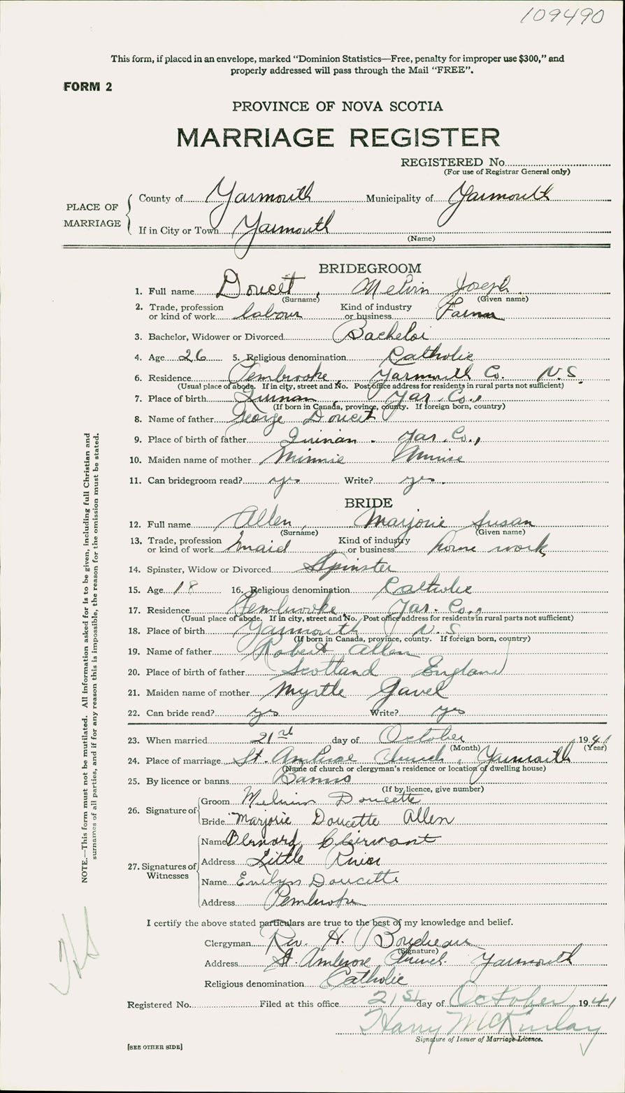 Registration: Year: 1941 number: 109490