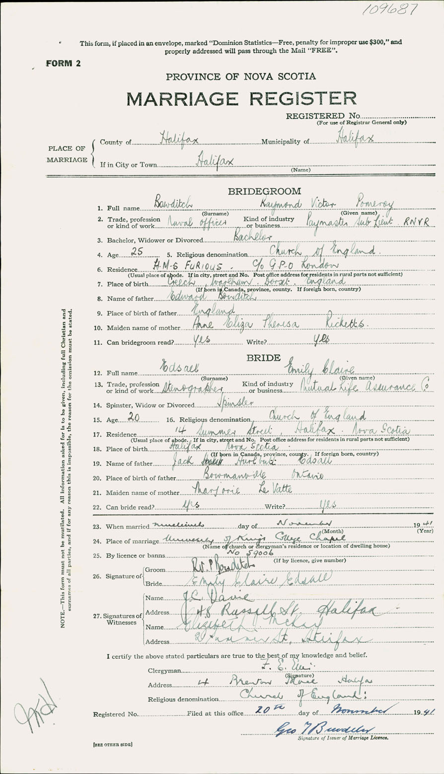 Registration: Year: 1941 number: 109687