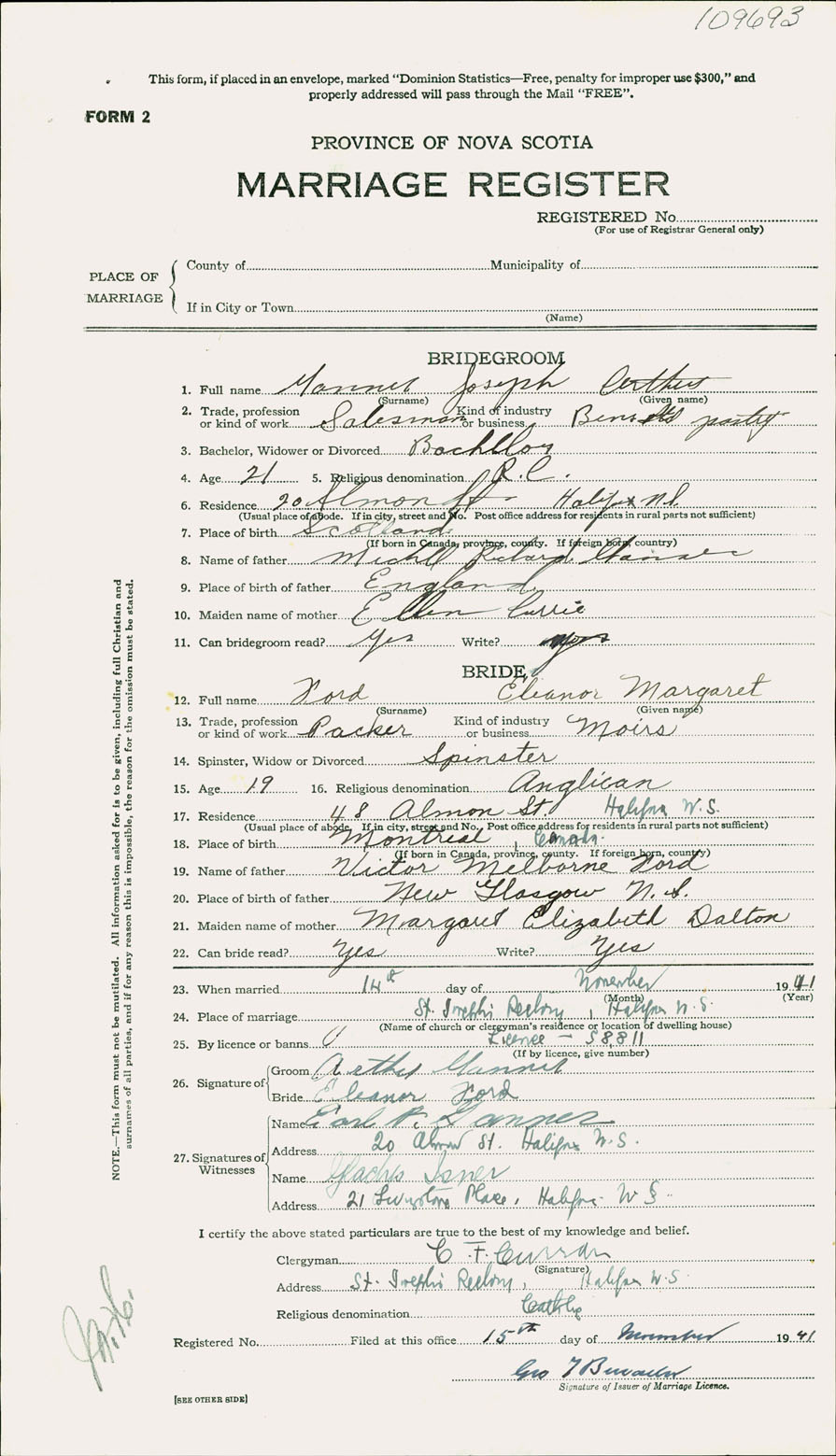 Registration: Year: 1941 number: 109693