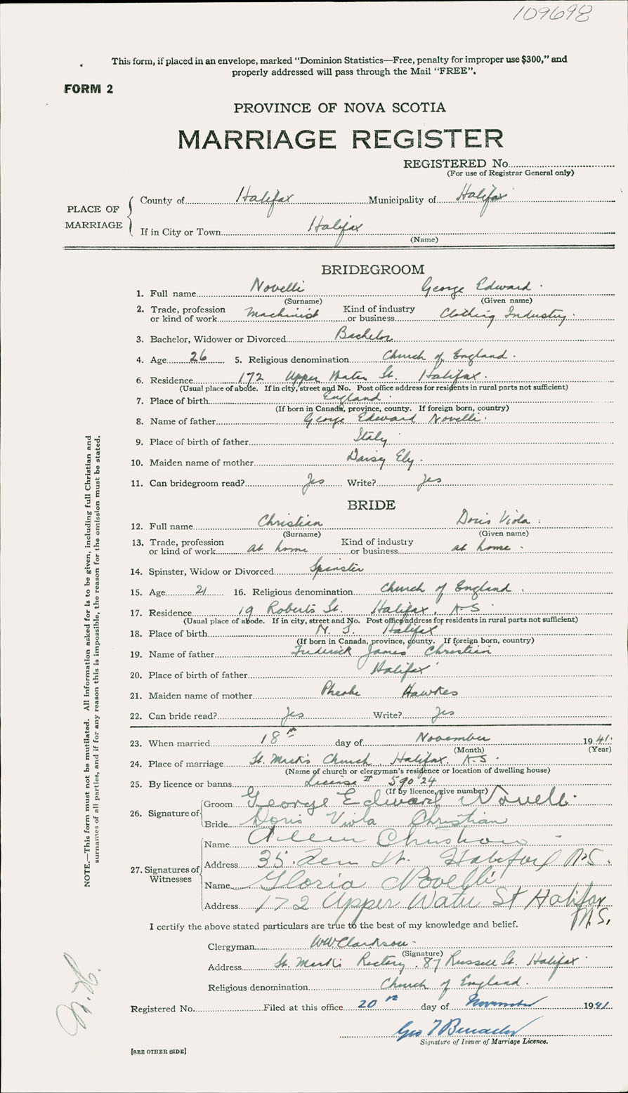 Registration: Year: 1941 number: 109698