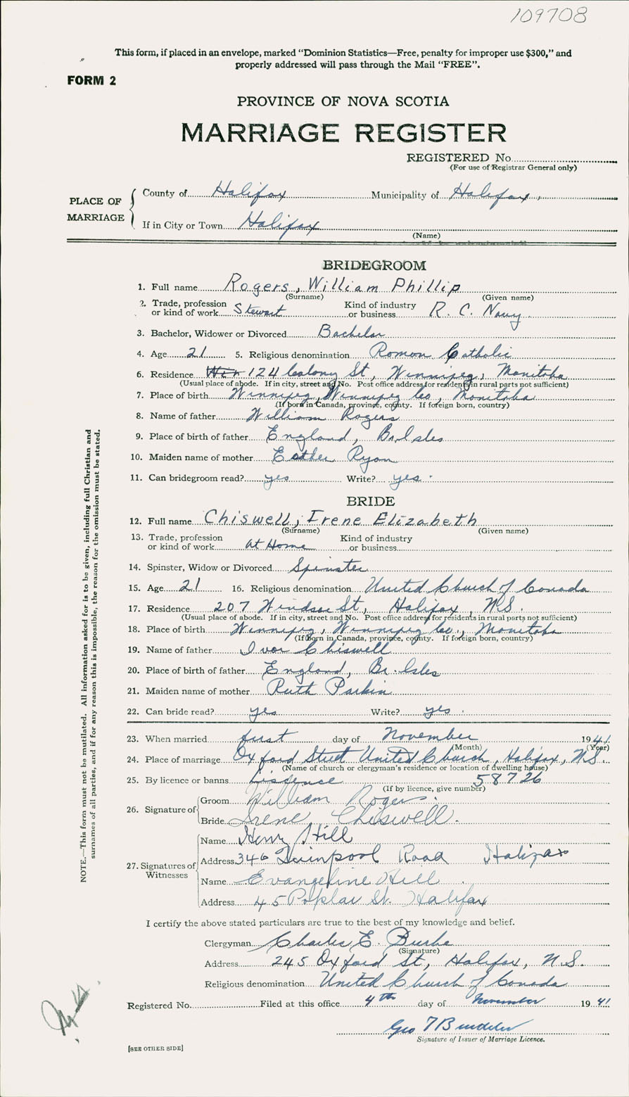 Registration: Year: 1941 number: 109708
