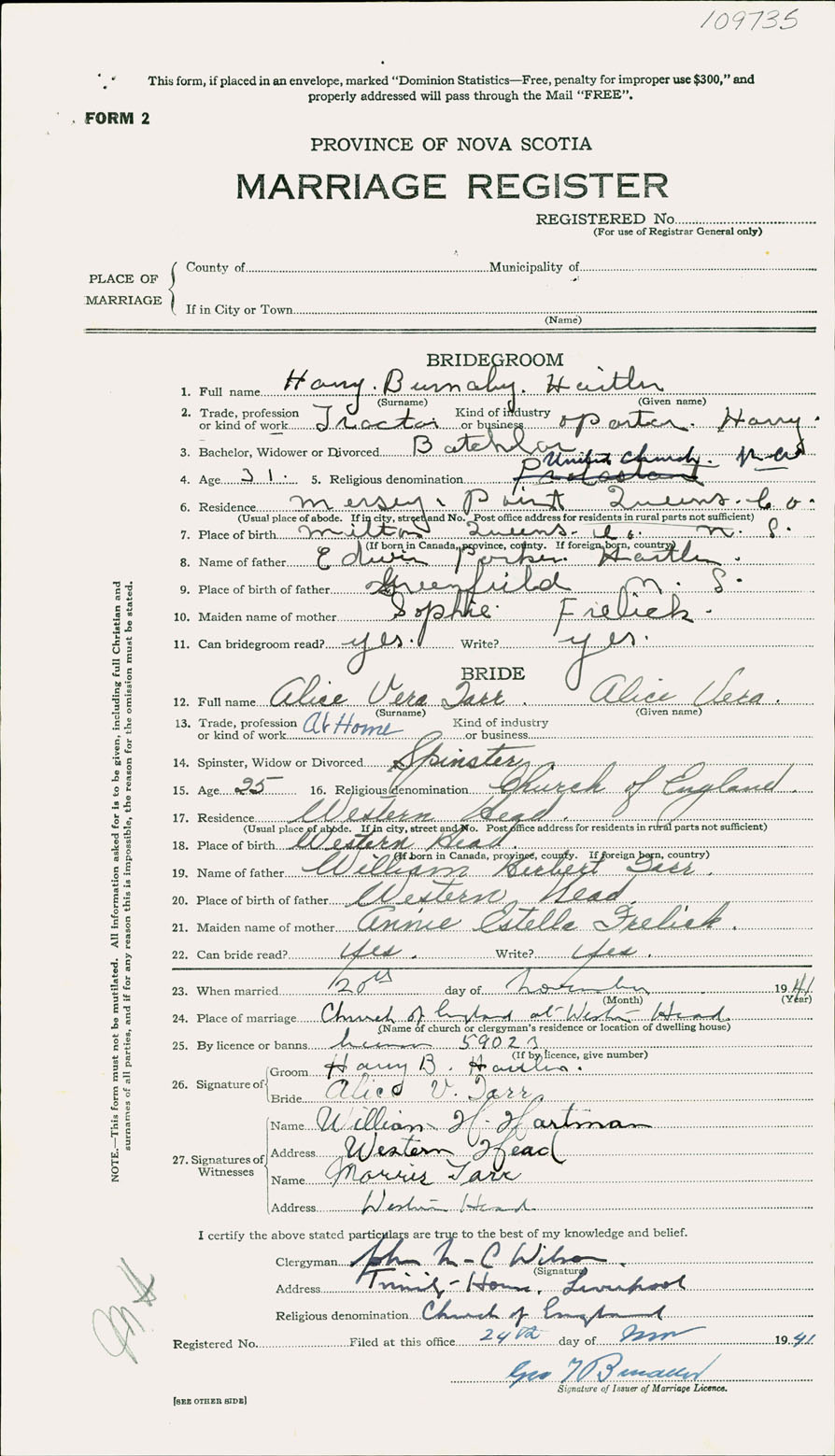 Registration: Year: 1941 number: 109735