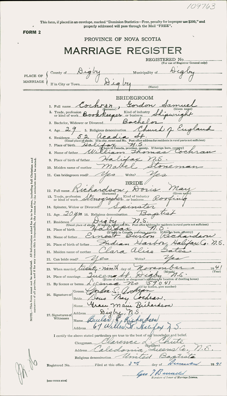 Registration: Year: 1941 number: 109763
