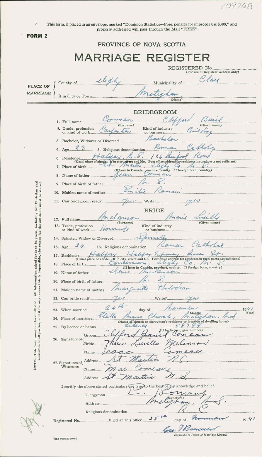 Registration: Year: 1941 number: 109768