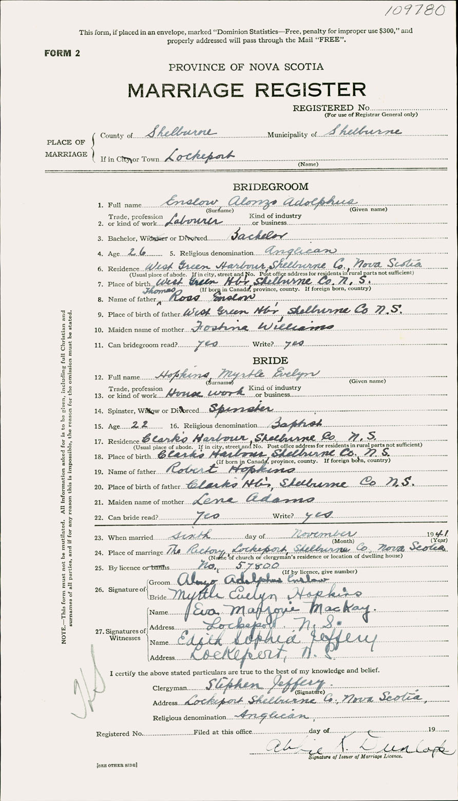 Registration: Year: 1941 number: 109780