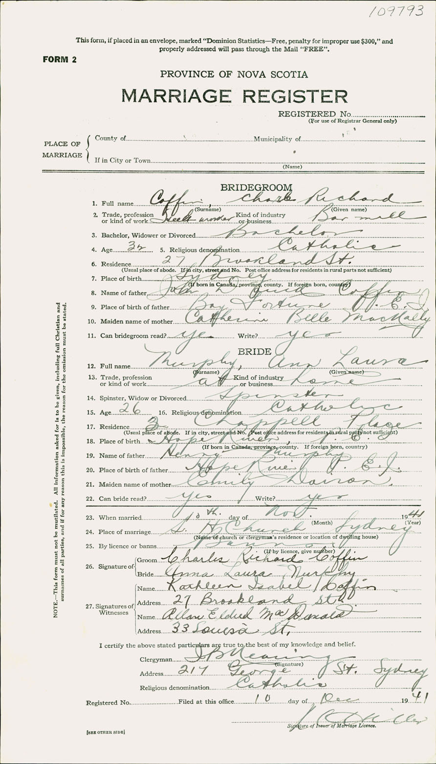 Registration: Year: 1941 number: 109793