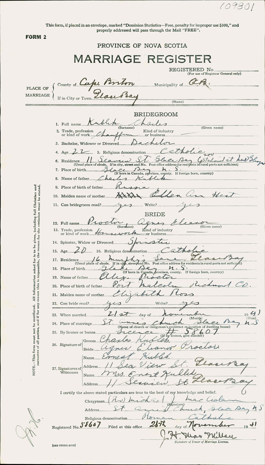 Registration: Year: 1941 number: 109801