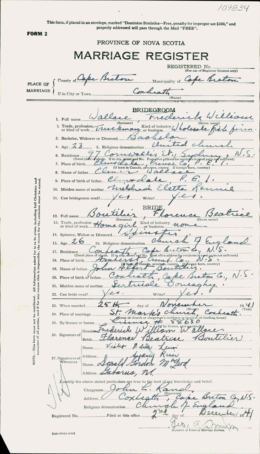 Registration: Year: 1941 number: 109834