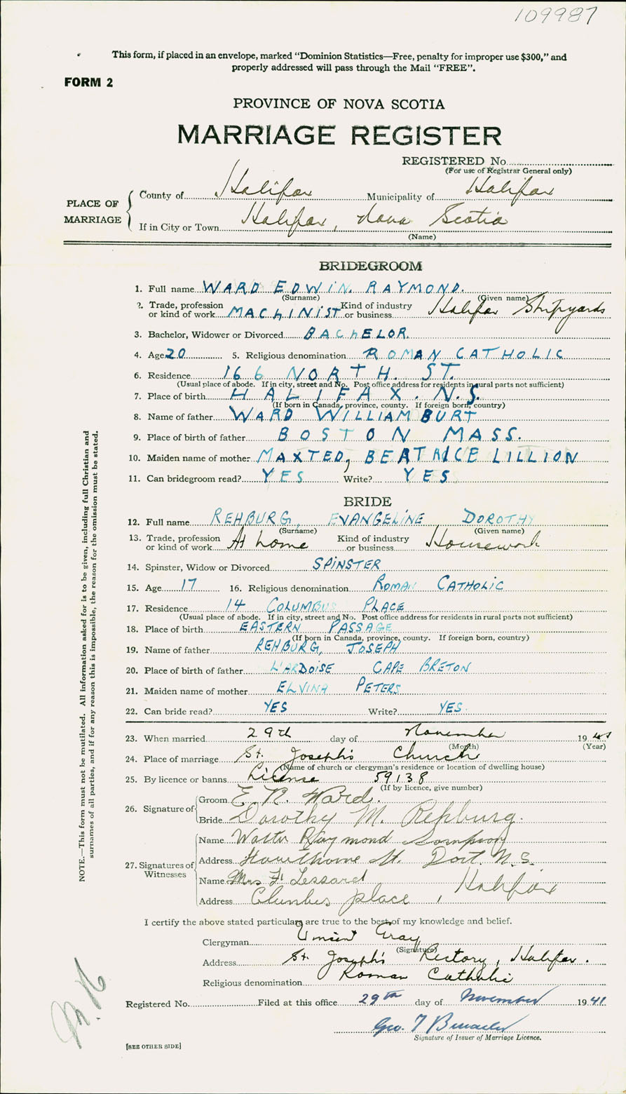 Registration: Year: 1941 number: 109987