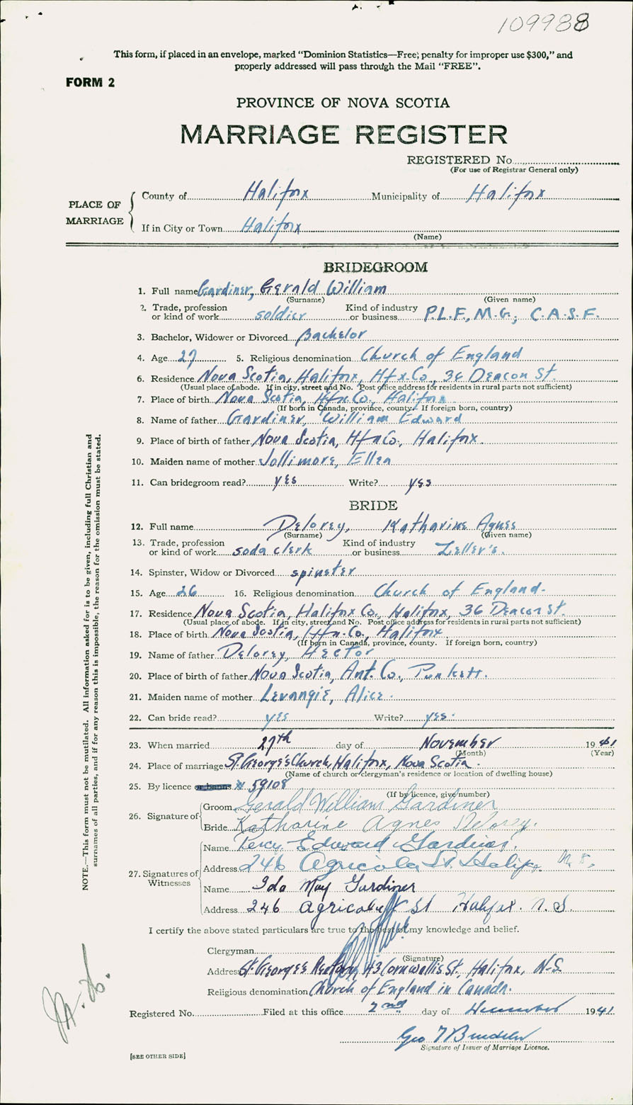 Registration: Year: 1941 number: 109988