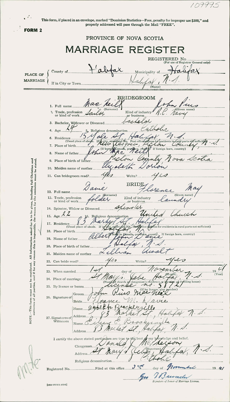 Registration: Year: 1941 number: 109995