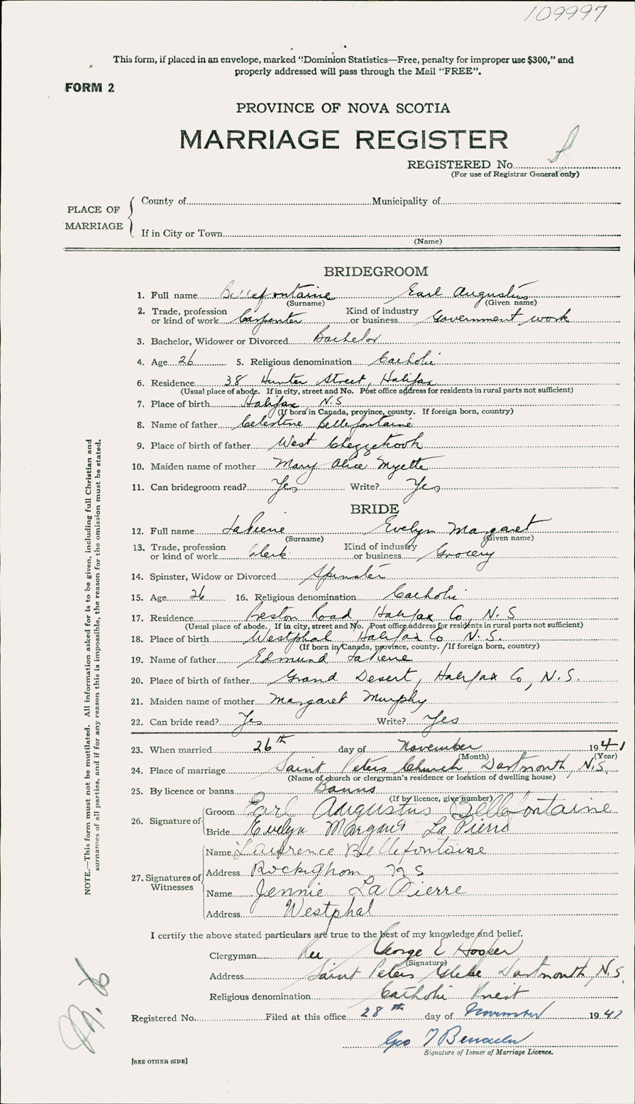 Registration: Year: 1941 number: 109997