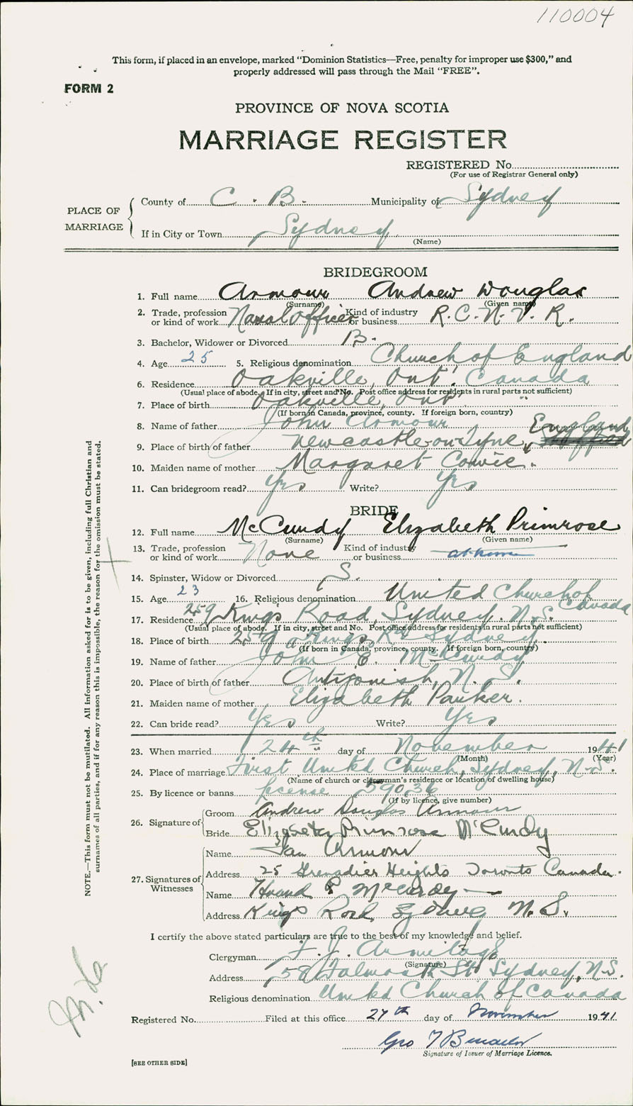 Registration: Year: 1941 number: 1104