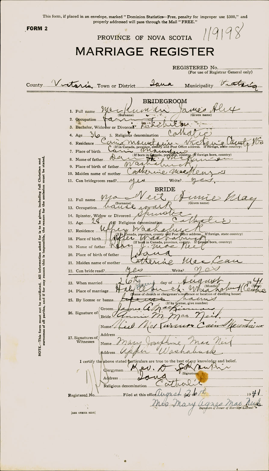 Registration: Year: 1941 number: 119198