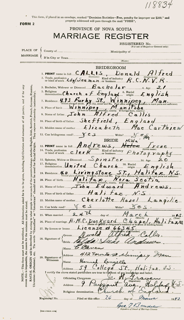 Registration: Year: 1943 number: 118834