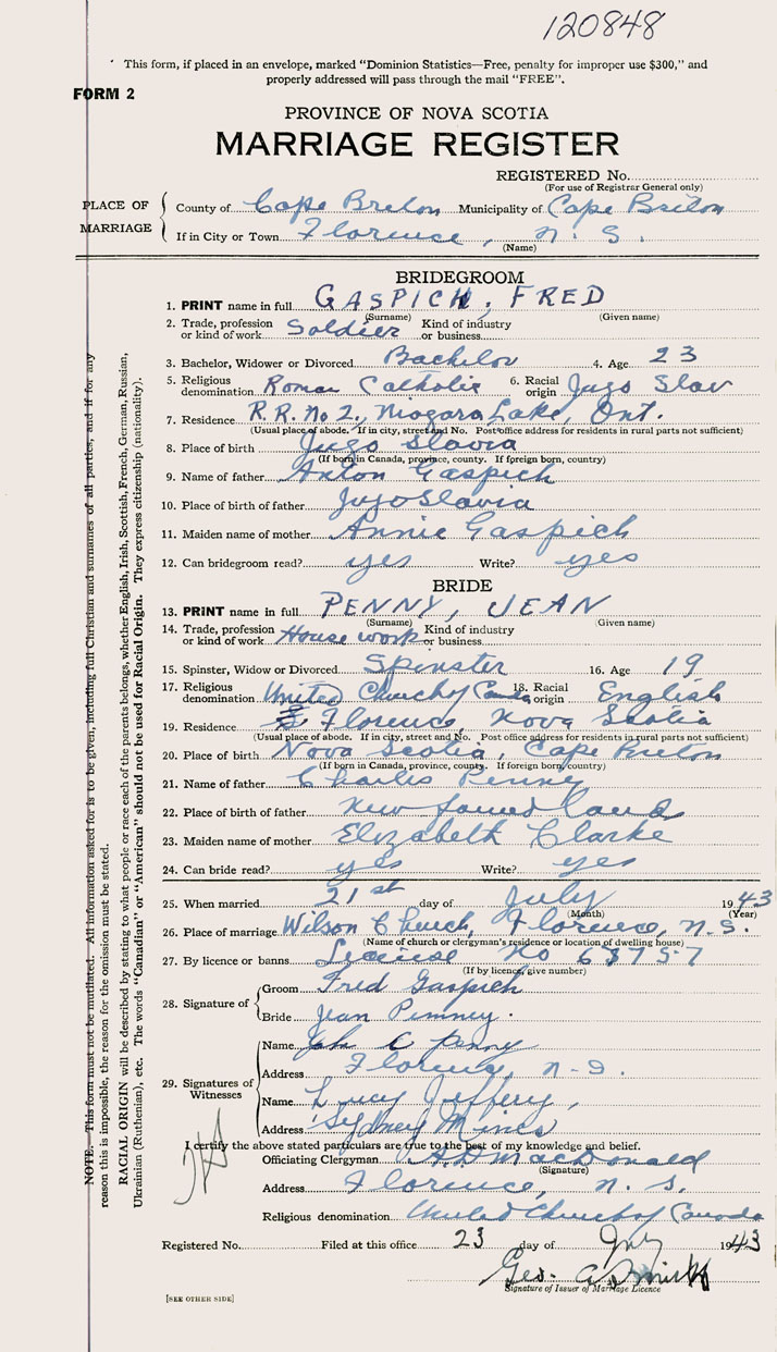 Registration: Year: 1943 number: 120848