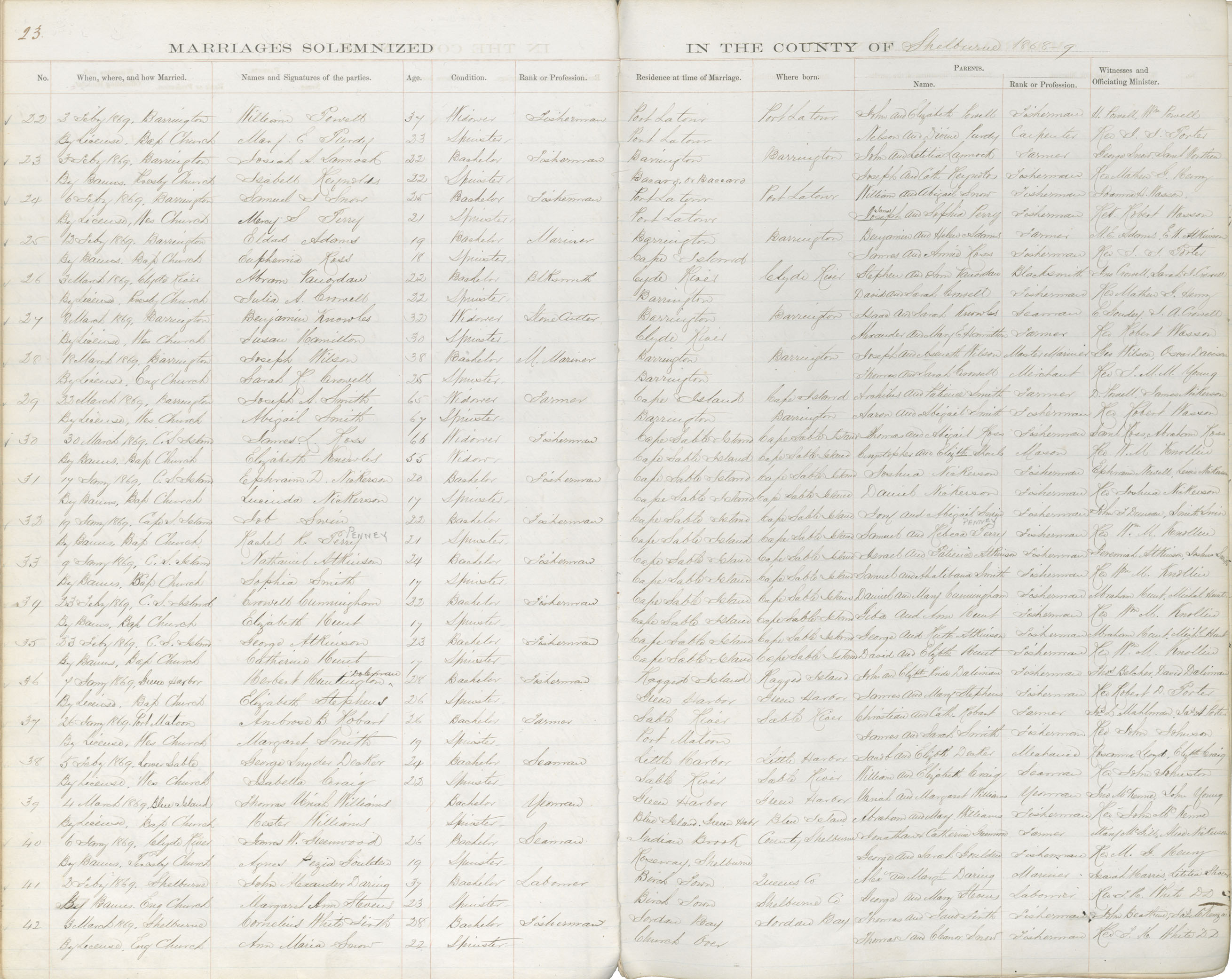 Registration: Year: 1869 book: 1836 page: 23 number: 22