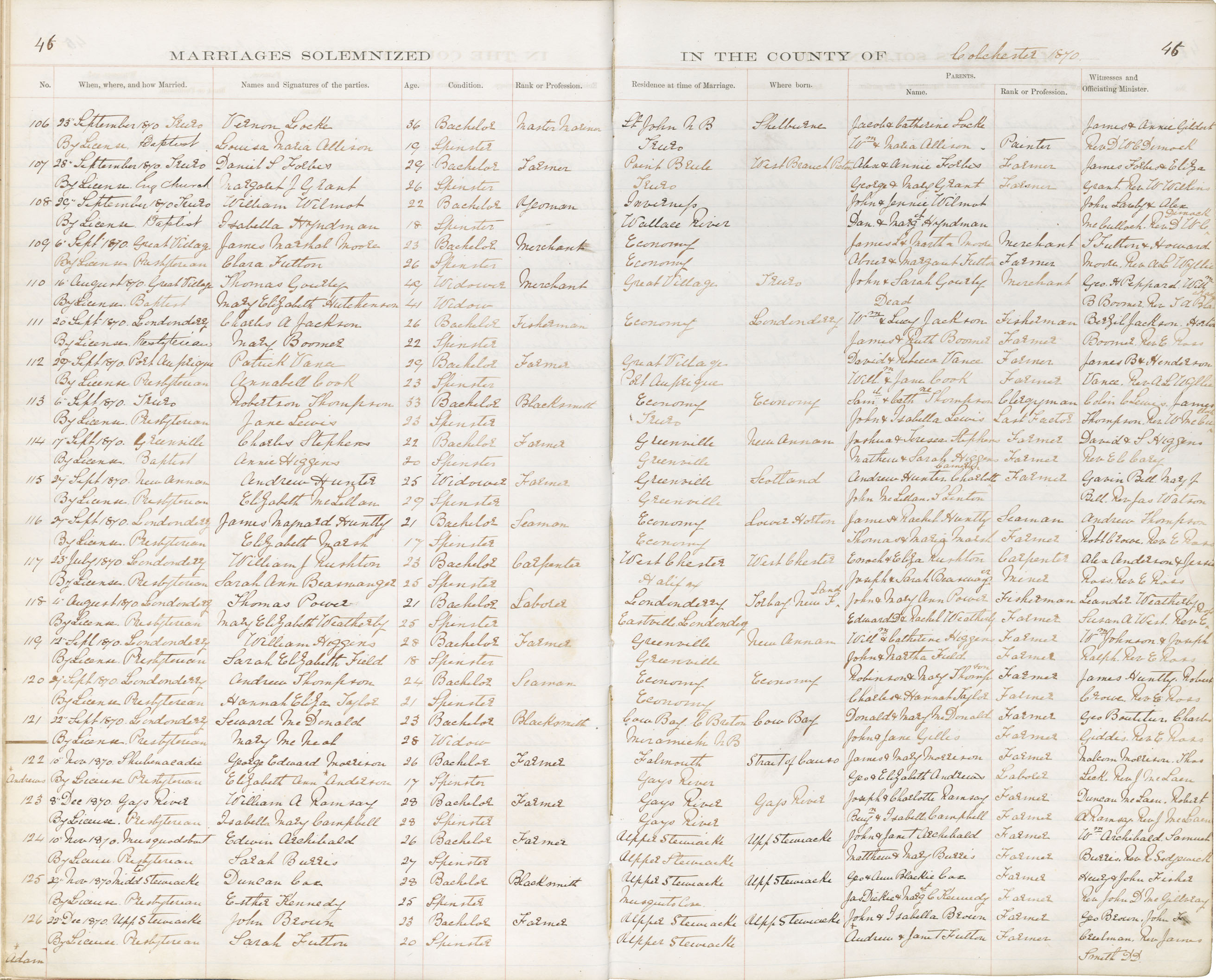 Registration: Year: 1870 book: 1806 page: 46 number: 126