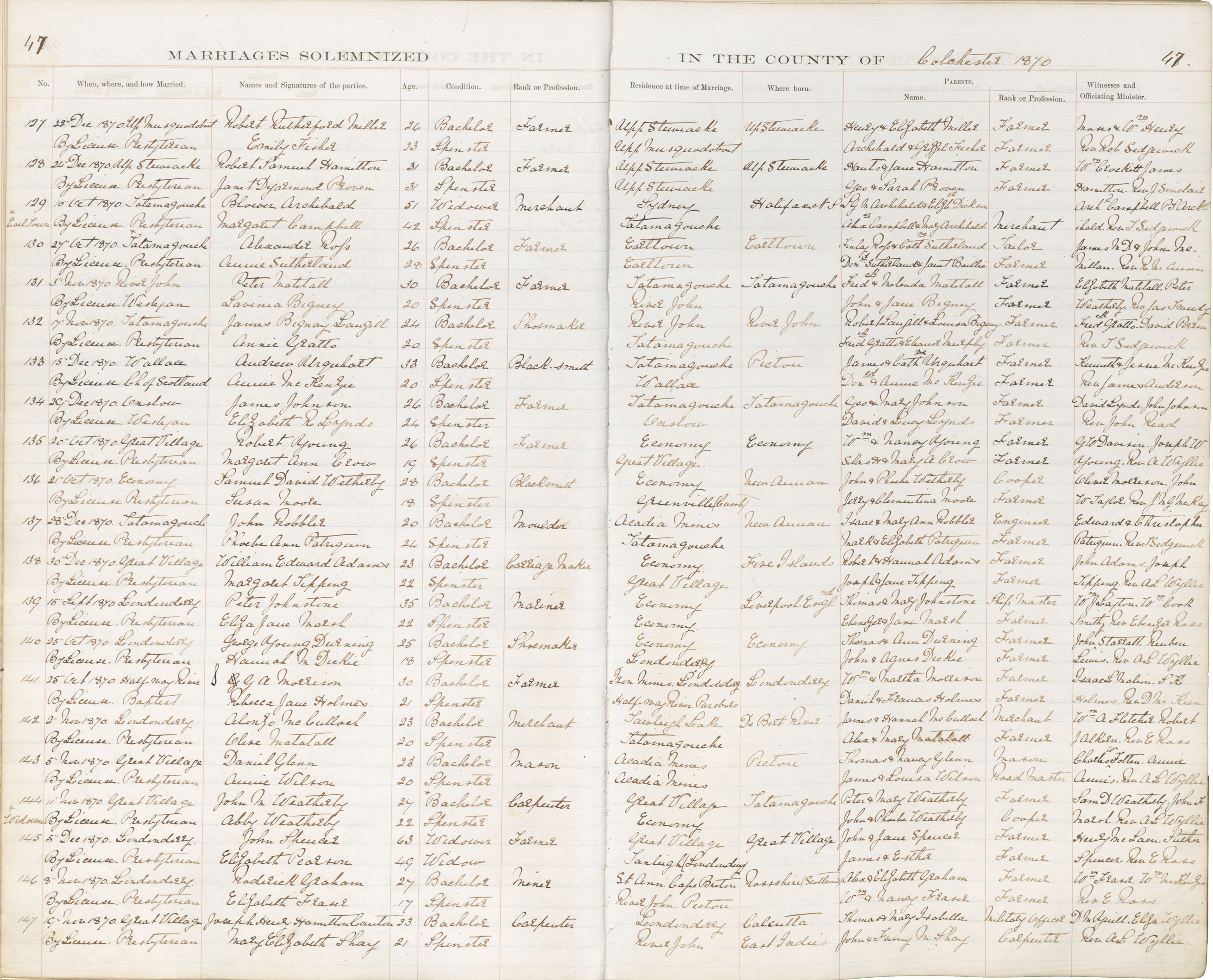 Registration: Year: 1870 book: 1806 page: 47 number: 147