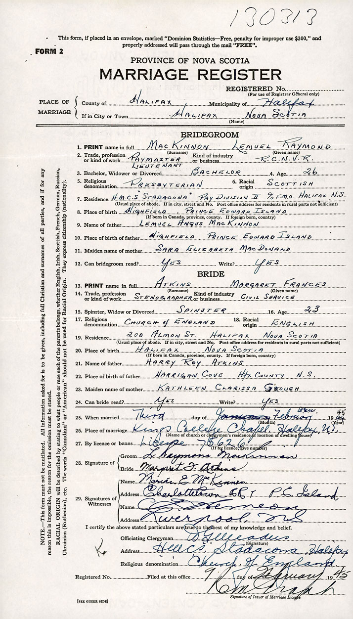 Groom Lemuel Raymond MacKinnon