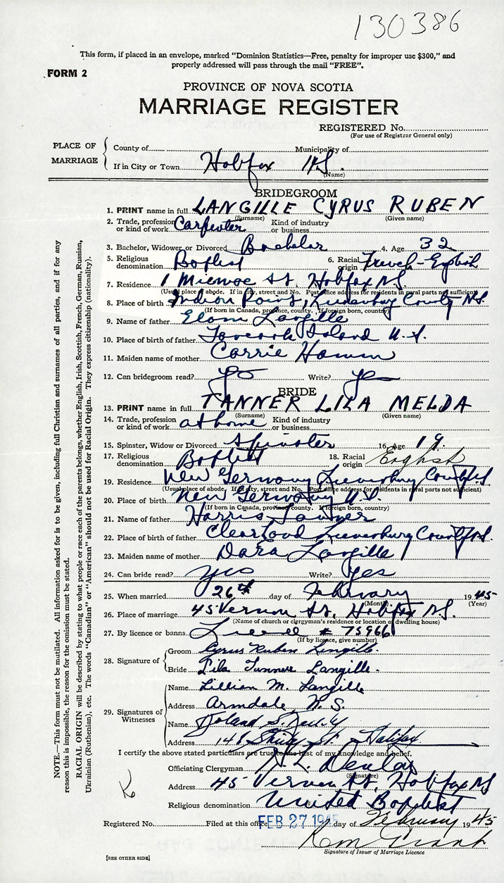 Groom Cyrus Ruben Langille