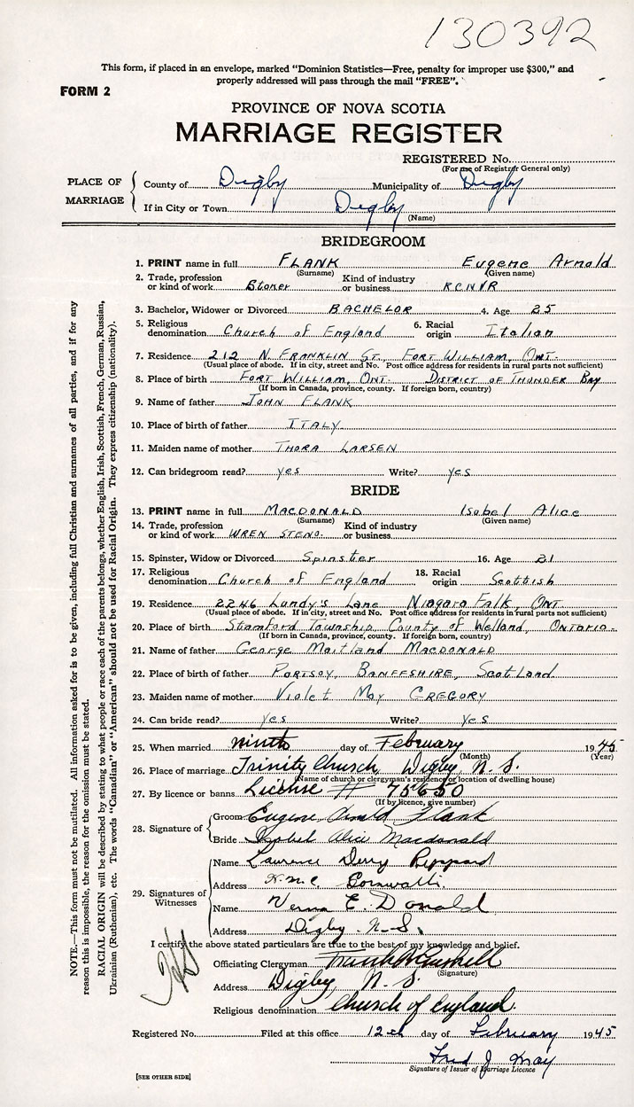 Groom Eugene Arnold Flank