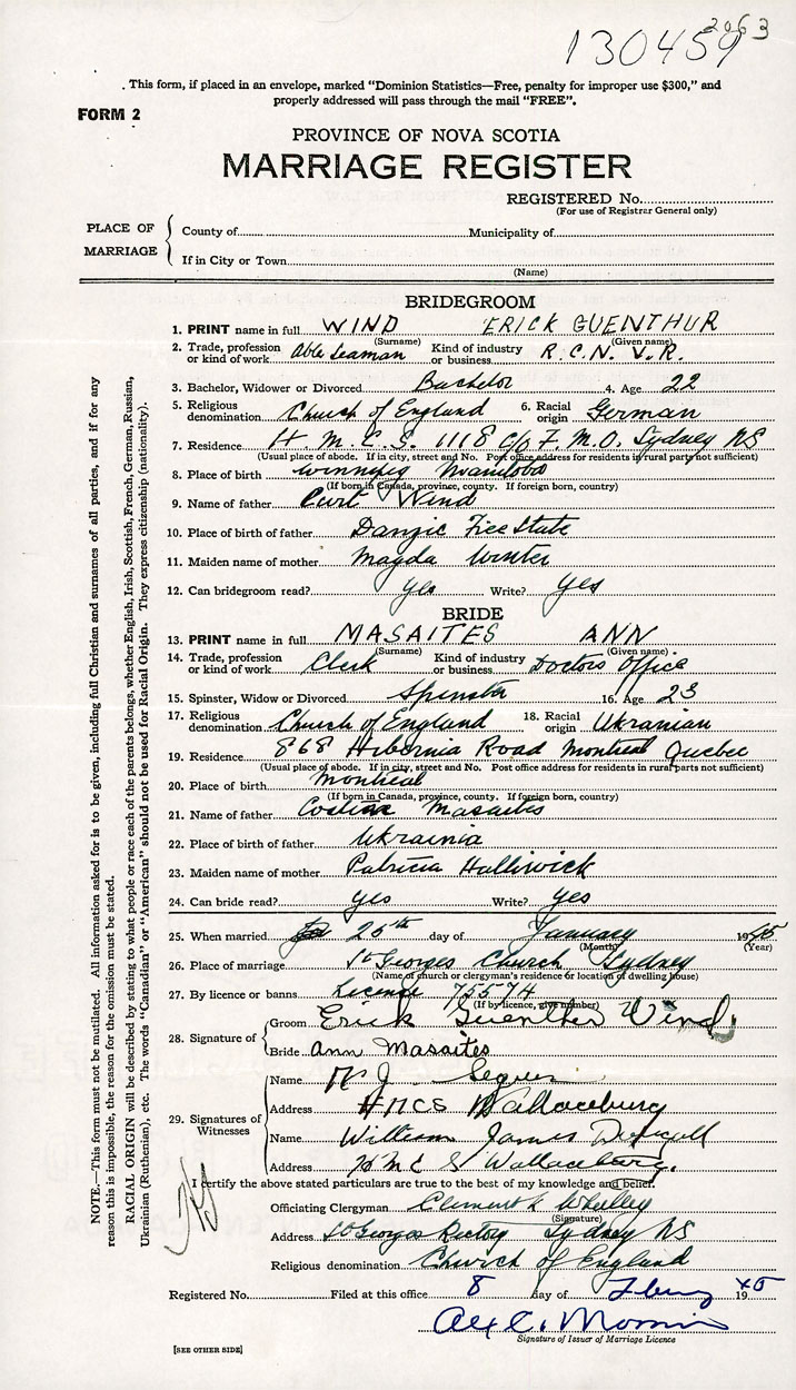 26. Place of marriage St. George's Church Sydney, Cape Breton County