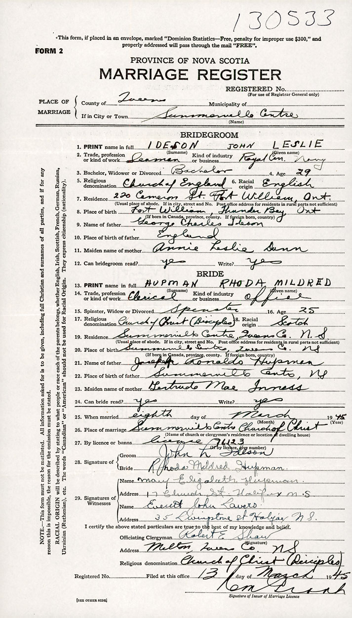 Groom John Leslie Ideson