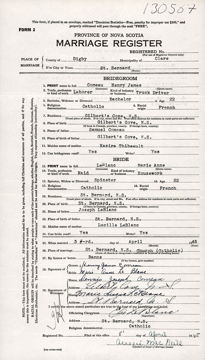 Groom Henry James Comeau