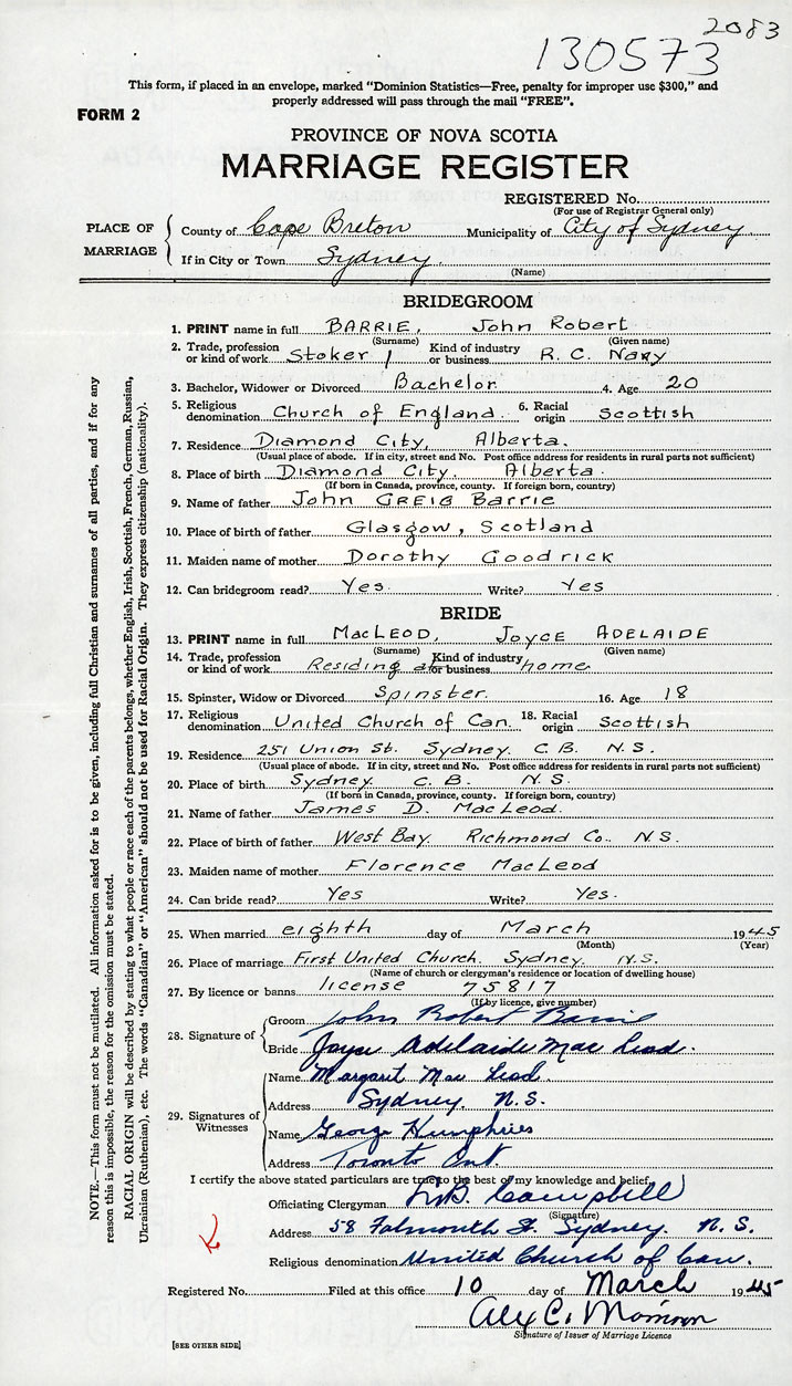Bride Joyce Adelaide MacLeod