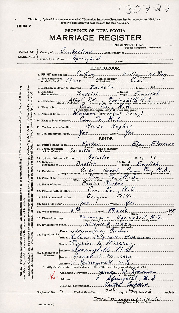 Groom William LeRoy Corkum