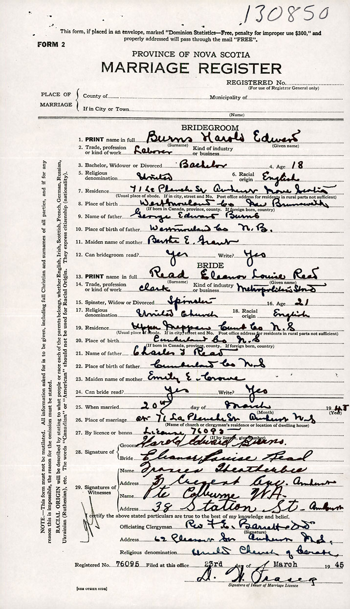 Groom Harold Edward Burns