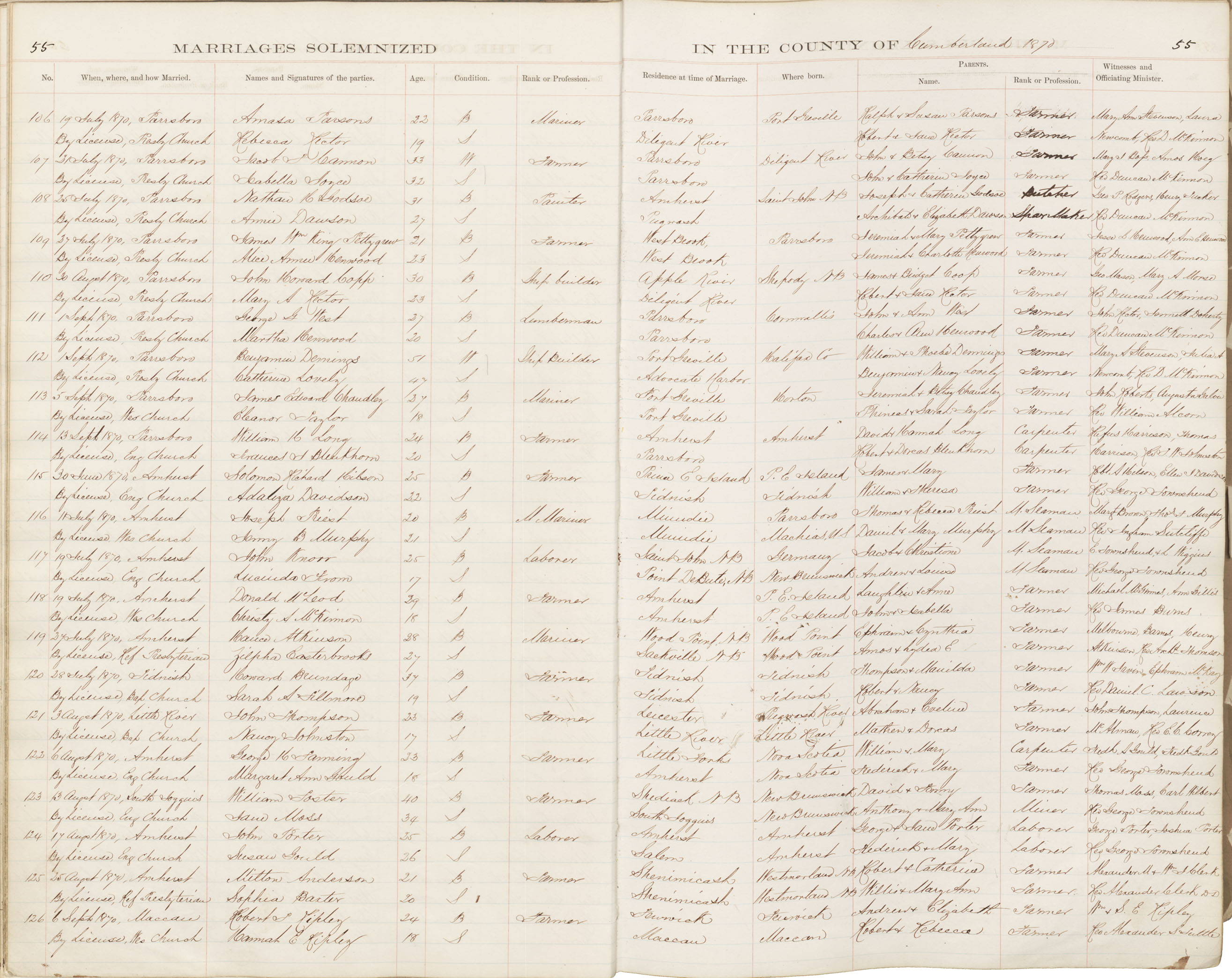 Registration: Year: 1870 book: 1809 page: 55 number: 106